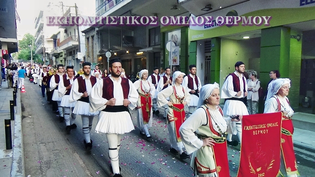 Στη μεγαλειώδη πομπή, συμμετείχε κι εφέτος ο ΕΚΠΟΛΙΤΙΣΤΙΚΟΣ ΟΜΙΛΟΣ ΘΕΡΜΟΥ (Ε.Ο.Θ.) με πολυπληθή ομάδα αποτελούμενη από άνδρες και γυναίκες εκ των Χορευτικών του τμημάτων.